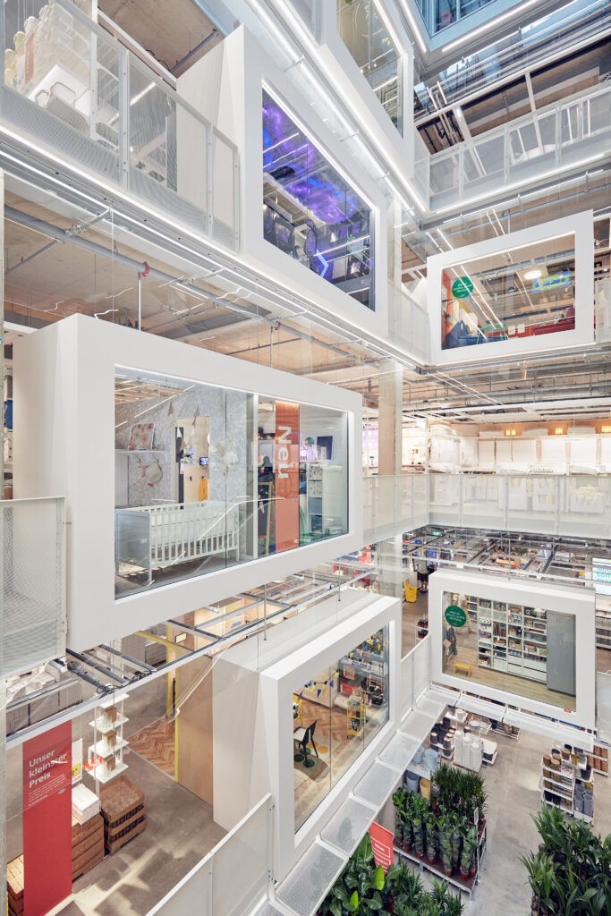 El edificio se organiza en una cuadrícula de columnas de hormigón prefabricado de 10×10 metros, lo que permite una gran flexibilidad en el uso y diseño de los espacios. Los primeros cuatro pisos albergan la tienda IKEA, mientras que los dos superiores están ocupados por un albergue Jo&Joe con 345 camas. Esta combinación crea un edificio que permanece activo las 24 horas del día, los 7 días de la semana, fomentando la interacción y la vitalidad urbana.